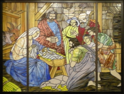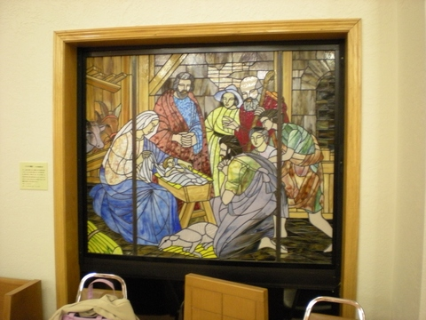 This is an example of an image taken of a stained-glass window from a side angle.pixFront a simple interface to select the four corners of the window and create a cropped rectangular image on screen.